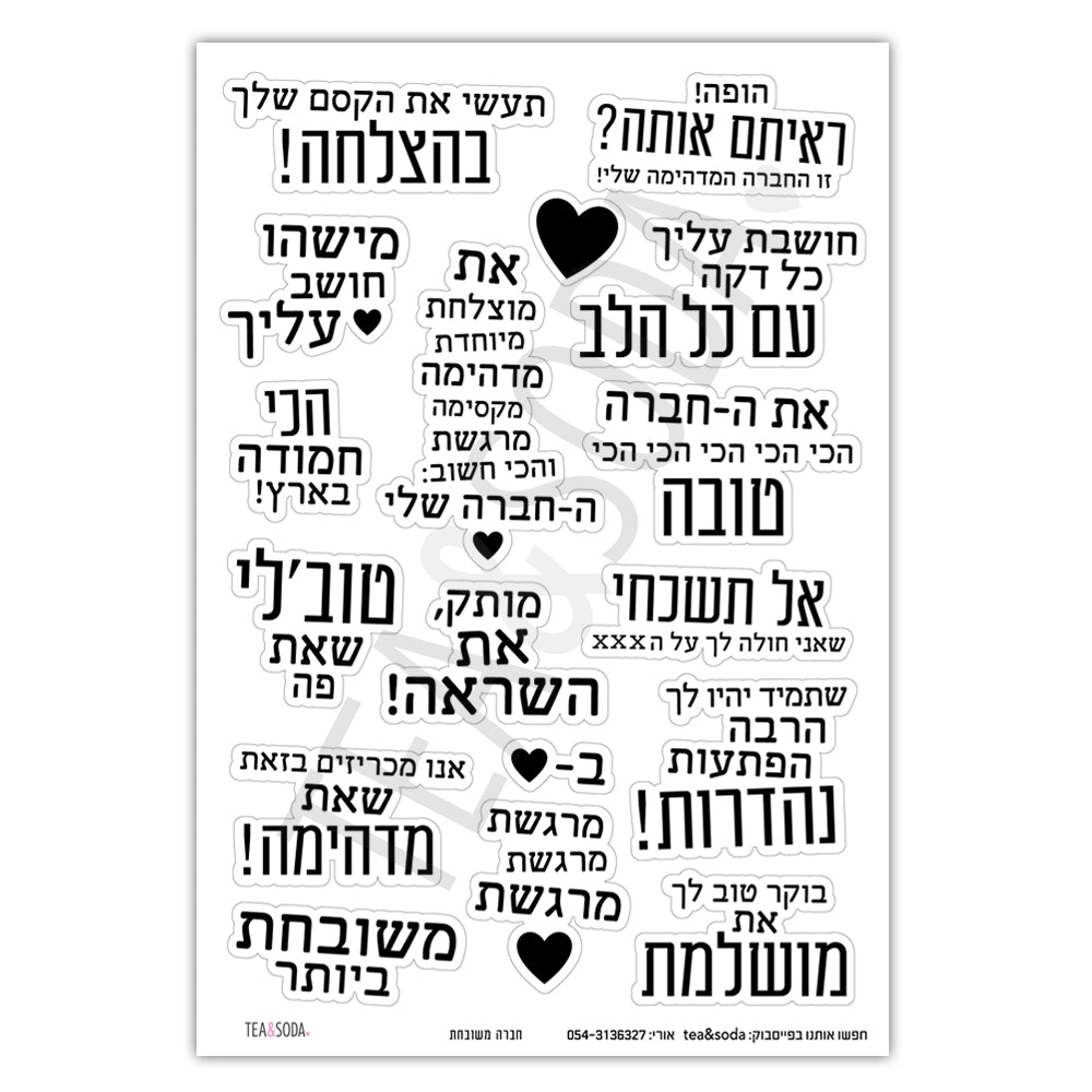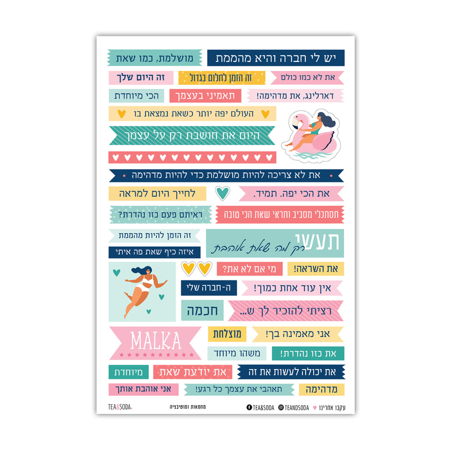 יתר על כן, מדבקות יכולות להיות גם דרך מהנה לשלב בדיחות פנימיות או זיכרונות משותפים בברכה. על ידי שימוש במדבקות שמייצגות בדיחה פנימית או רגע מיוחד, אתן מוסיפות מגע אישי שבוודאי יגרום לחברה שלכם לחייך.