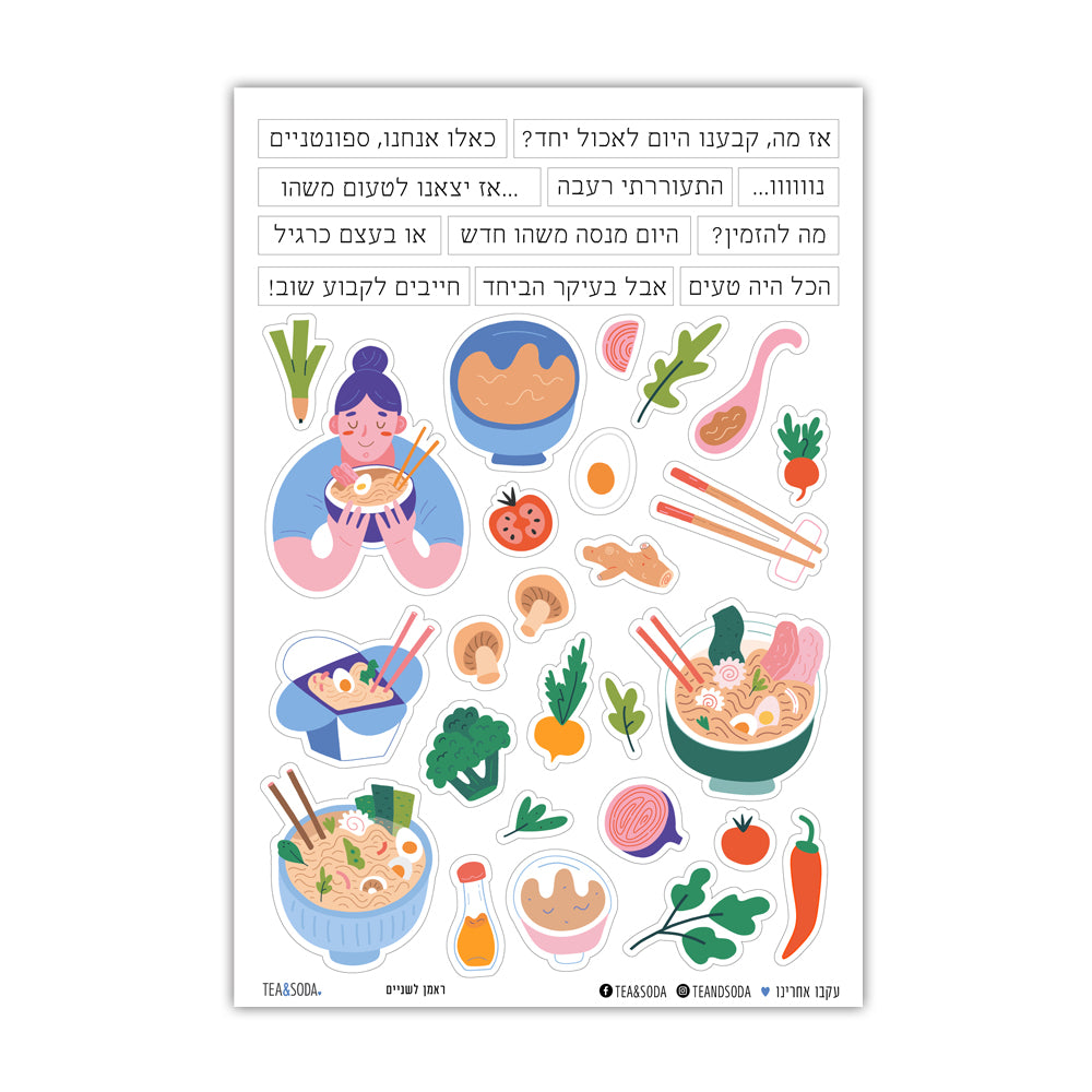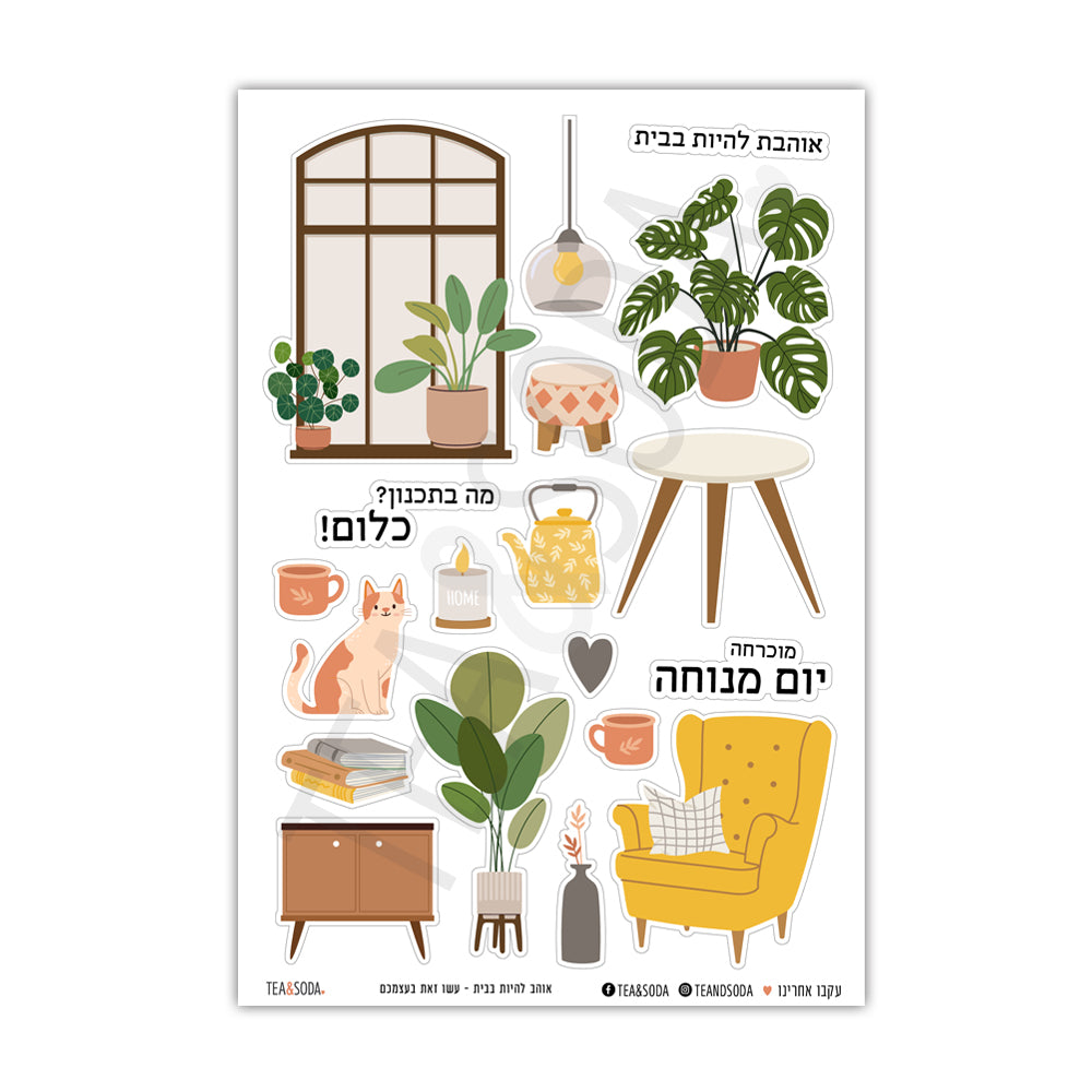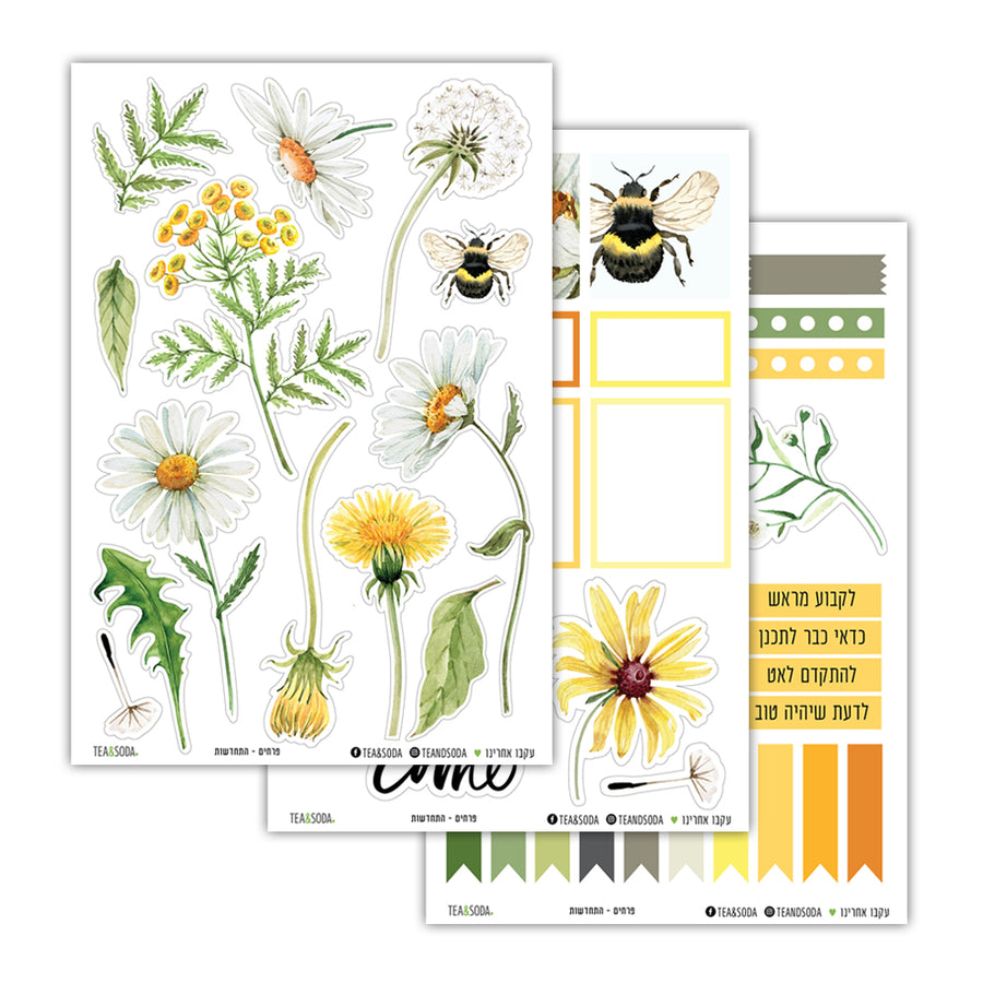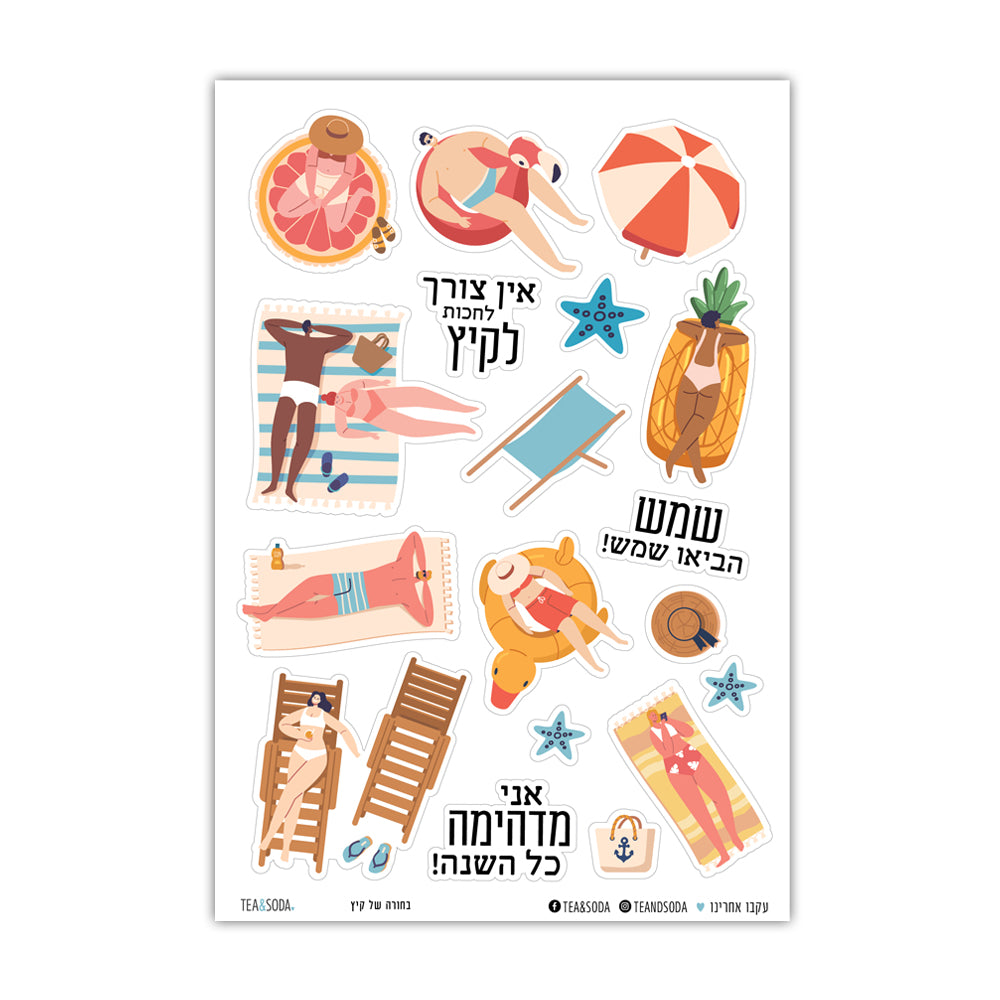 מארז מדבקות ליומן, מכיל איורים, אלמנטים צורניים וטקסטים לתכנון וקידום עשייה. המדבקות ניתנות לשימוש גם כמדבקות לברכות, עיצוב אלבומים, כרטיסי ברכה, אריזות ועוד. שלושה דפים במארז